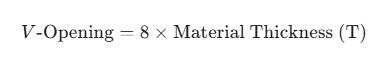 | Épaisseur du matériau (T) | Ouverture en V recommandée | Rayon typique (Ir) |