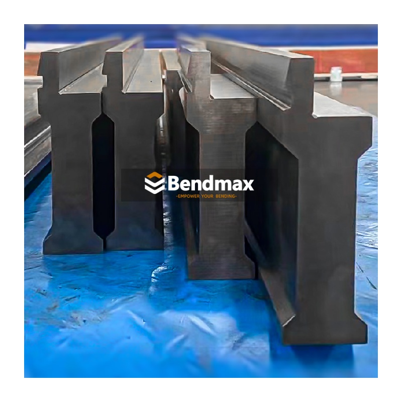 Une gamme complète d'outillage standard pour presses plieuses est disponible pour les presses plieuses de 120 à 30 000 kN. Matrices en V simples, multiples et réglables, outillage vertical amovible et outillage spécial pour applications personnalisées. Bendmax fabrique des outils de haute qualité, rectifiés avec précision, à partir des meilleurs matériaux pour une résistance maximale et une longue durée de vie. Le matrice de frein V simple de style LVD Fabriquée en acier à outils trempé 42CrMo, cette matrice en V est conçue pour former des angles aigus sur des pièces de tôlerie de précision utilisées dans les boîtiers électriques, les composants de quincaillerie et la fabrication légère. Lors du choix de ce type de matrice en V, assurez-vous que l'ouverture du V corresponde à l'épaisseur du matériau et au rayon intérieur souhaité afin d'obtenir des résultats précis sans surcharger la matrice. Pour des performances optimales, les opérateurs doivent maintenir les surfaces de la matrice propres, veiller à un alignement correct et éviter de dépasser les limites de charge de la presse plieuse afin de prévenir l'usure prématurée ou les irrégularités d'angle.