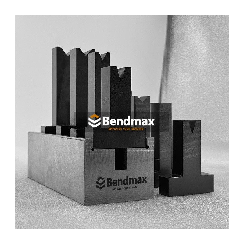 Une gamme complète d'outillage standard pour presses plieuses est disponible pour les presses plieuses de 120 à 30 000 kN. Matrices en V simples, multiples et réglables, outillage vertical amovible et outillage spécial pour applications personnalisées. Bendmax fabrique des outils de haute qualité, rectifiés avec précision, à partir des meilleurs matériaux pour une résistance maximale et une longue durée de vie. Le matrice de frein V simple de style LVD Fabriquée en acier à outils trempé 42CrMo, cette matrice en V est conçue pour former des angles aigus sur des pièces de tôlerie de précision utilisées dans les boîtiers électriques, les composants de quincaillerie et la fabrication légère. Lors du choix de ce type de matrice en V, assurez-vous que l'ouverture du V corresponde à l'épaisseur du matériau et au rayon intérieur souhaité afin d'obtenir des résultats précis sans surcharger la matrice. Pour des performances optimales, les opérateurs doivent maintenir les surfaces de la matrice propres, veiller à un alignement correct et éviter de dépasser les limites de charge de la presse plieuse afin de prévenir l'usure prématurée ou les irrégularités d'angle.