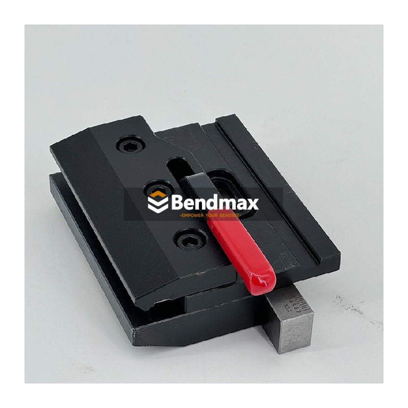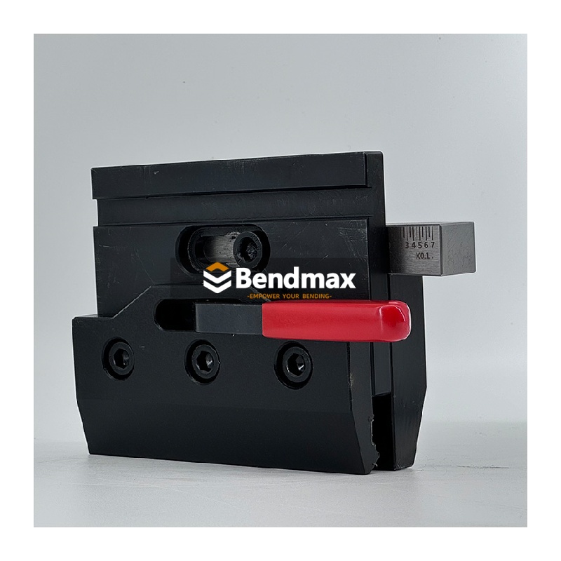 Ce Bride à levier excentrique pour outillage européenCe système est adapté aux opérateurs exigeant un changement d'outils rapide sur les systèmes d'outillage européens. Sa faible largeur (17,5 mm) le rend idéal pour les machines à espace de montage limité. Lors du choix des brides, il est essentiel d'adapter la hauteur et le type de levier à la traverse supérieure de la presse plieuse pour garantir un positionnement correct du poinçon. Pendant l'utilisation, évitez toute force excessive sur le levier excentrique et contrôlez régulièrement les surfaces de contact afin de prévenir tout désalignement et toute usure prématurée.