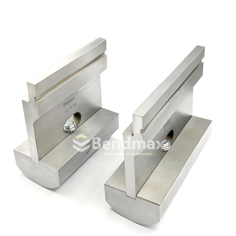 Une gamme complète d'outillage standard pour presses plieuses est disponible pour les presses plieuses de 120 à 30 000 kN. Matrices en V simples, multiples et réglables, outillage vertical amovible et outillage spécial pour applications personnalisées. Bendmax fabrique des outils de haute qualité, rectifiés avec précision, à partir des meilleurs matériaux pour une résistance maximale et une longue durée de vie. Le matrice de frein V simple de style LVD Fabriquée en acier à outils trempé 42CrMo, cette matrice en V est conçue pour former des angles aigus sur des pièces de tôlerie de précision utilisées dans les boîtiers électriques, les composants de quincaillerie et la fabrication légère. Lors du choix de ce type de matrice en V, assurez-vous que l'ouverture du V corresponde à l'épaisseur du matériau et au rayon intérieur souhaité afin d'obtenir des résultats précis sans surcharger la matrice. Pour des performances optimales, les opérateurs doivent maintenir les surfaces de la matrice propres, veiller à un alignement correct et éviter de dépasser les limites de charge de la presse plieuse afin de prévenir l'usure prématurée ou les irrégularités d'angle.